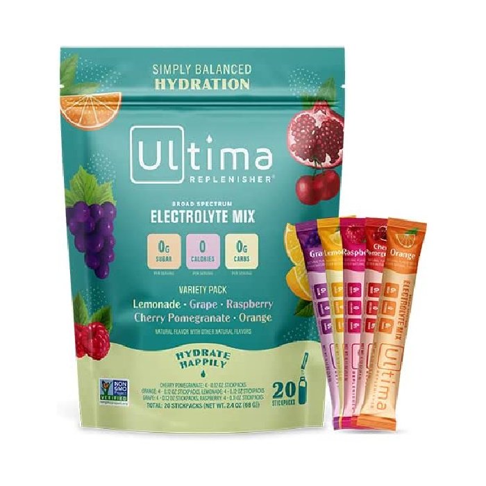 Best Low-Sodium Hydration Powder: Ultima Replenisher ($0.49/serving)
