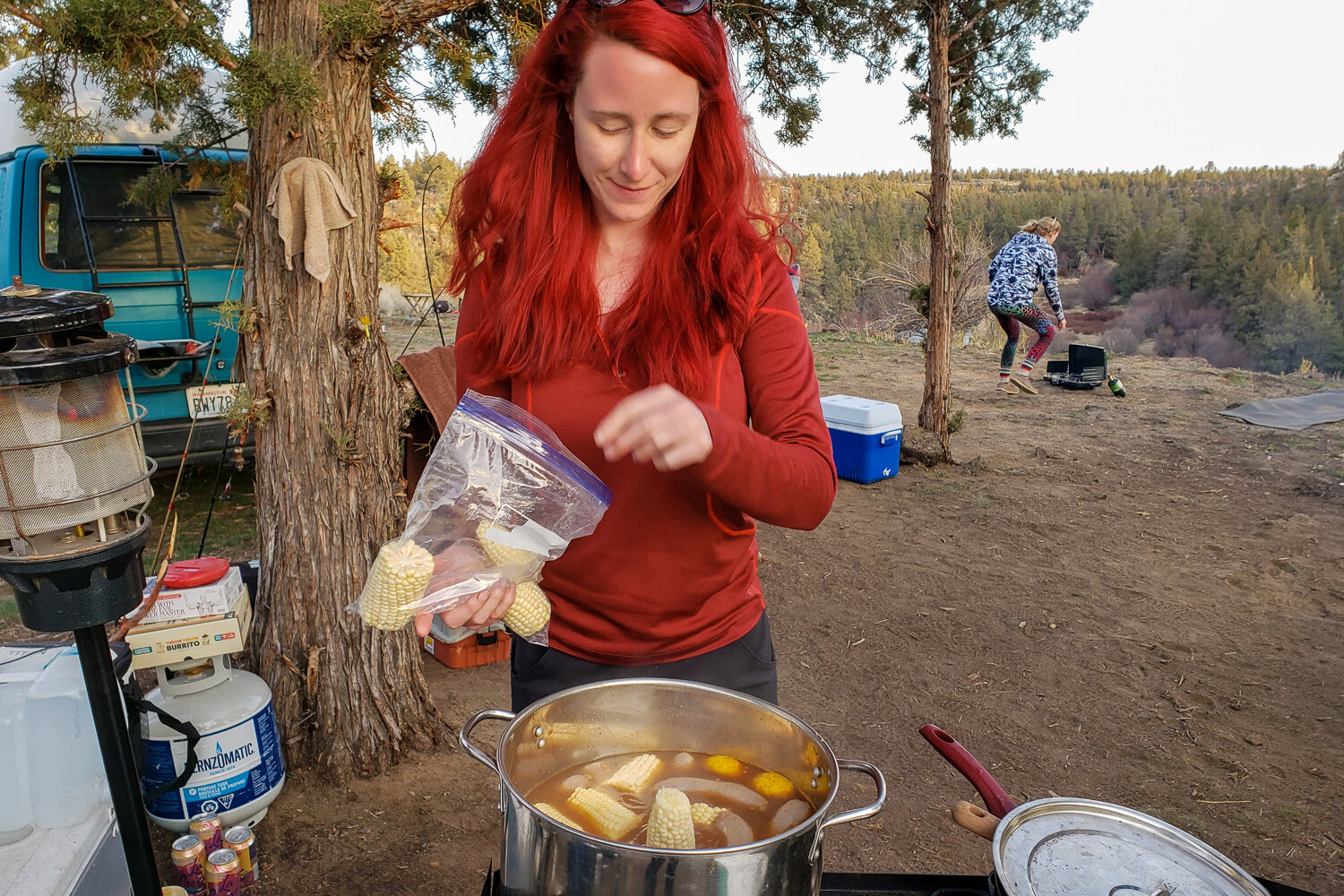 A low boil makes for a truly memorable camping experience. It’s a fun and festive way to feed a big group, and once you have everything prepped, (could do at home or at the campsite), all you have to do is drop things into a pot of boiling water in succession. Make a note to remember the order/timing and get your phone timer ready!