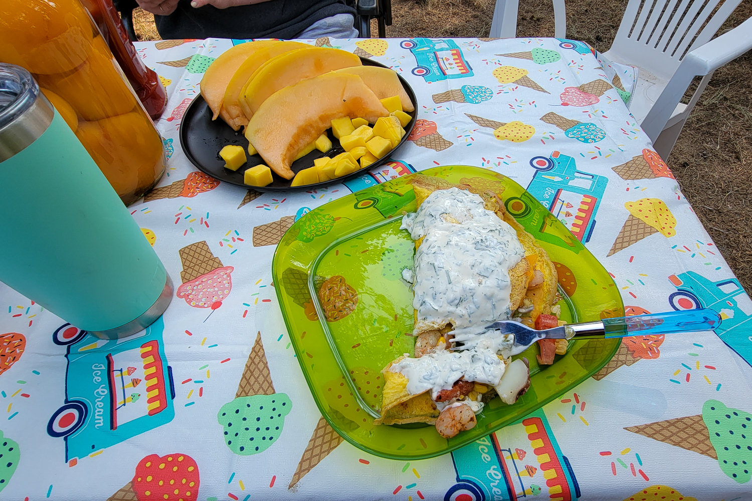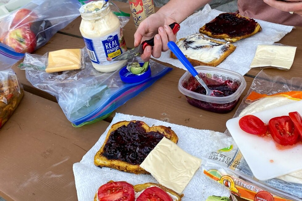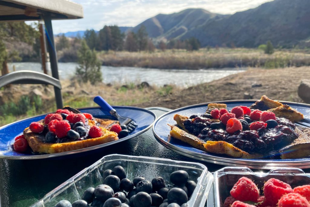 French toast satisfies the sweet tooth in your group, but it also packs a punch of protein to fuel your day of adventure. It’s fun and easy to make in camp. If you’re not a big fan of sweets, you can also make it savory with pesto, ham, cream cheese, etc.