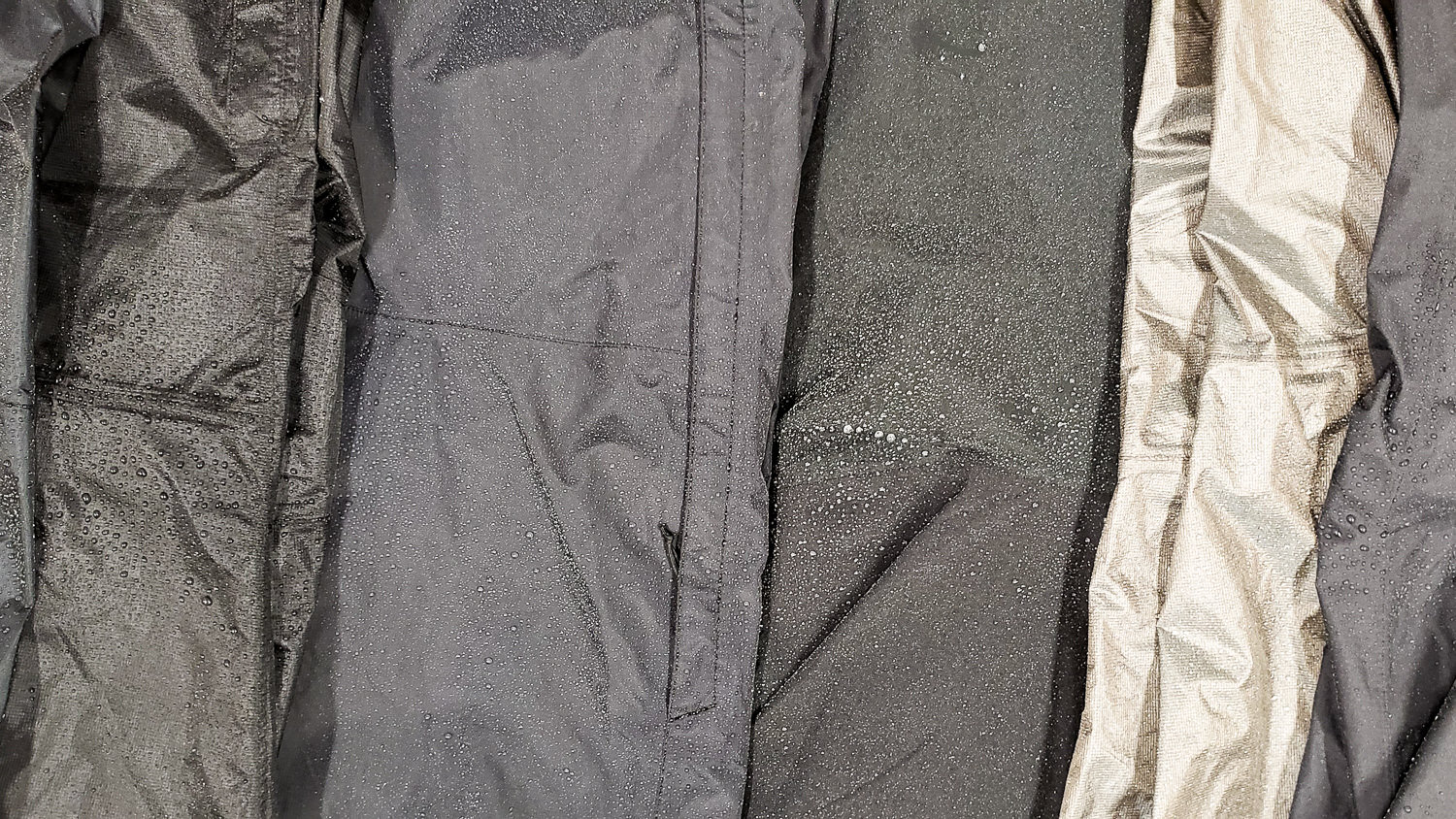 Lastly, we examine weather resistance with a pooled water test, where we let water sit on one spot of the fabric for over 20 minutes to check for moisture penetration and absorption.