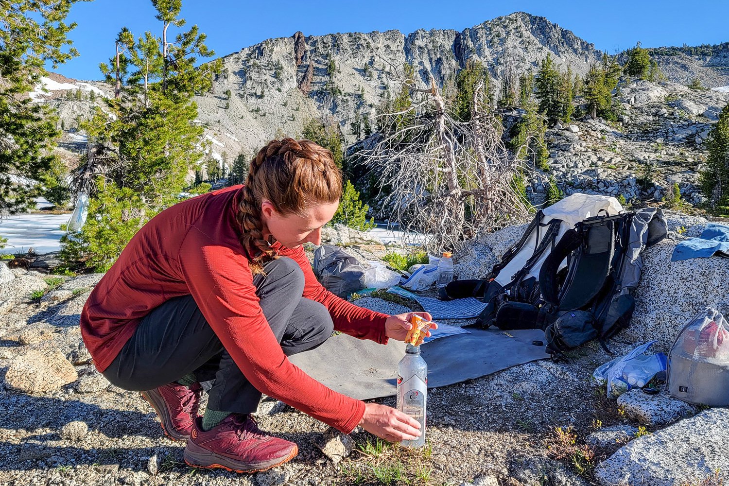 If you don’t have the resources or time to pursue this, it’s generally effective to stay within Skaver’s stated ranges: 300 to 500 milligrams of sodium and 60 to 110 milligrams of potassium. Consider a higher-sodium product or doubling up on the serving for extended trail days, multi-night trips, and particularly hot weather.