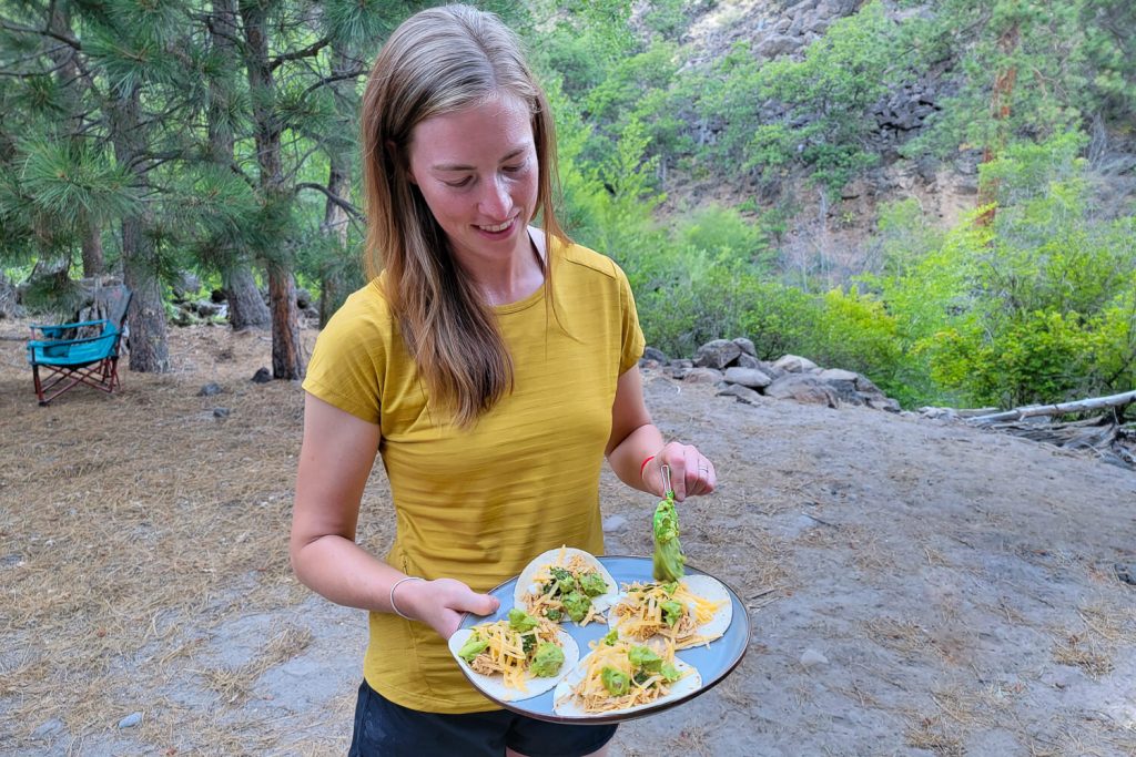 Add as many toppings as you’d like. Some of our favorite taco toppings are salsa for spice, cabbage for crunch, avocado for decadence, and lime juice or queso fresco for punch. To make things even easier in camp, you could cut toppings at home and pre-cook the meat (an Instant Pot is awesome for this).